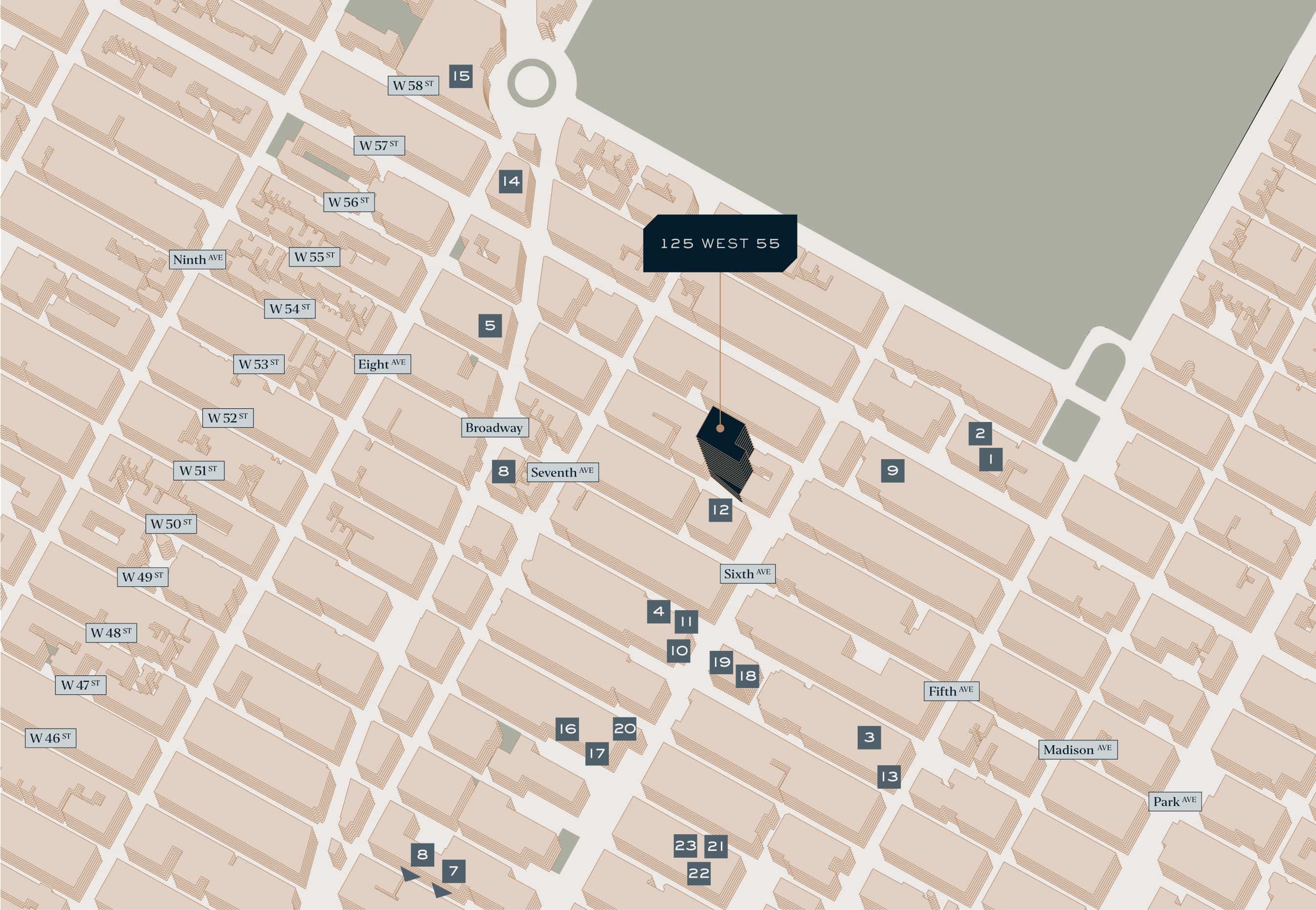 The neighborhood around 125 West 55th is rich with restaurants, retail and bars, and is moments from Billionaire’s Row and Central Park.